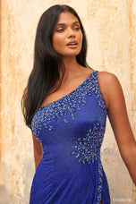 Sherri Hill 54889 will have your pageant ready! This one-shoulder style is covered in liquid beading and has gorgeous beaded accents along the neckline and waist. Wear this high-slit gown for Pageant, Prom, Homecoming, or any formal Gala!