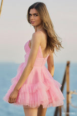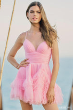 Tulle and fun go hand in hand. There's no way you won't love Sherri Hill 55818! This tulle mini dress has ruffles on the skirt and flattering pleats on the waistline and bust. The bodice has a sweetheart neckline, and skinny straps add comfort to the style! Wear this short a-line for Homecoming, Semi-formal Dance, and more! Available up to size 18!