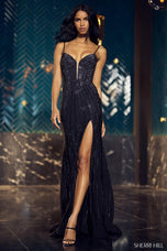 Sleek and sexy, Sherri Hill style 55924 will make you feel like the goddess that you are! The plunging illusion neckline, corset bodice, lace-up back, and high slit give the dress a sexy feel. The entire stretch jersey prom dress is embellished with shimmering heat stones that catch the light with every movement! All eyes will be on you in this new variation of a tried and true Sherri Hill style!