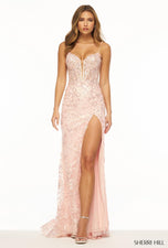 *adds to cart* You're going to look lovely in lace at prom 2024 in stunning Sherri Hill style 56208! The fitted lace prom dress is complete with sheer corset bodice with plunging illusion neckline over fitted skirt with high slit. The bodice is supported by two thin straps. A deep v-neckline in front and back make the Sherri Hill prom dress very flattering, drawing the eye towards the smallest part of your waist. The high slit is ideal for walking with ease and comfortably dancing the night away. It is sure to be a night to remember when you step out in Sherri Hill style 56208!