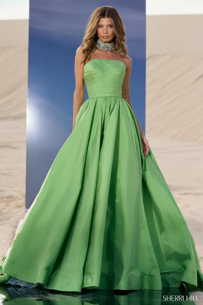 Create a moment for you and everyone that lays eyes on you with Sherri Hill style 56748. This long gown has a beautiful modified bust line accent your beautiful dcolletage. Just like Cherry Hill to leave no rock unturned, she also creates a beautiful beaded choker that will draw attention up to your stunning face. And a full taffeta a line skirt with a ton of fullness that will create a moment with every step that you take. Available in a gorgeous chartreuse, a stunning bright fuchsia, and classic peacock/blue/green mix we know you'll find a color that works perfect for you. If you're looking for a eye-catching prom dress, debutante gown (depending on your system), or a gown that you can always keeping your closet then shop the latest Sherri Hill styles right here at Terry Costa.!