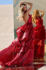 Sherri Hill Long Ruffled Collar Tiered Ballgown 56801