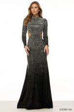 Exude grace and poise when you step out in Sherri Hill style 57003, a stunning long sleeve high neck gown with side cutouts and open back. The entire gown is embellished with glistening heat stones, concentrated heavily at the top of the gown and disbursing more freely as they cascade down the skirt. At the intersection of modest and sexy lies this stunning long sleeve Sherri Hill gown from the spring 2025 collection. Turn every head at your upcoming prom, formal, or black-tie affair in this fabulous gown!