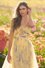 Piping Hot off the New York Fashion Week Runway, the yellow floral print prom dress of our DREAMS!!! Sherri Hill Style 56279 is everything you could ever want - from the stunning contrast of the yellow and purple floral print to the trending rosette embellishment on the bodice. The bodice is elegantly ruched with keyhole cut out over flattering empire waistline and topped with a sweetheart neckline complete with V-shape halter strap. The Sherri Hill Yellow Floral Rosette prom dress is light, feminine, and perfect for a variety of events. Whether you're going to prom, college or sorority formal, a charity event or you're the guest of a spring wedding, Sherri Hill floral guest dress will ensure you look effortlessly striking!