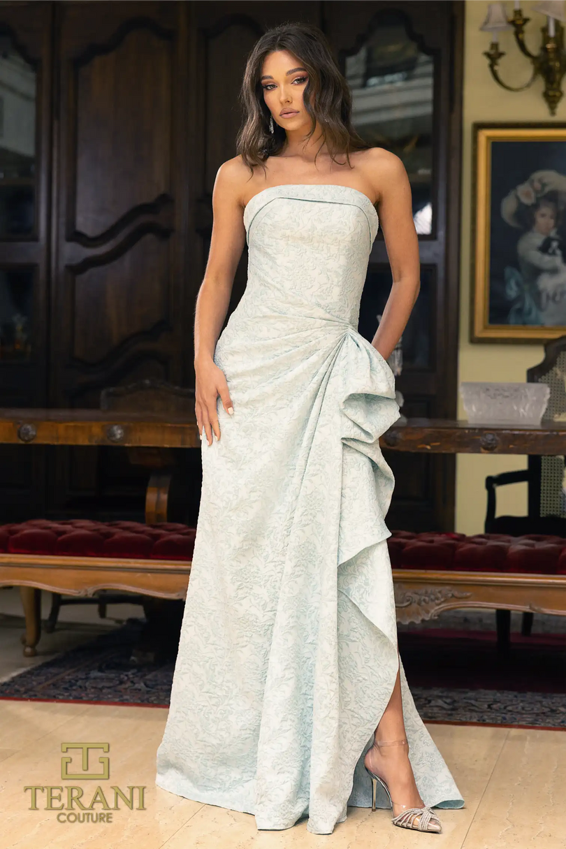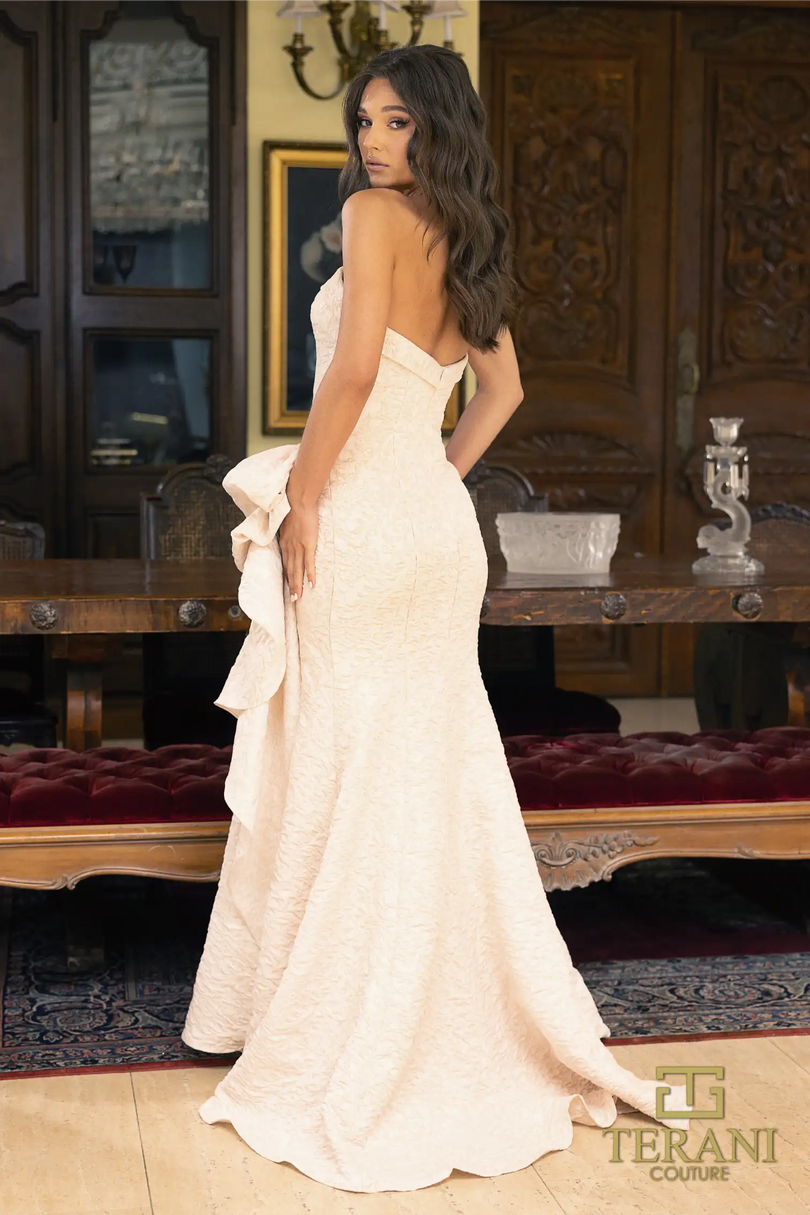 Terani Couture Strapless Brocade Evening Dress 241E2525