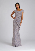 Simply stunning and ready to shine, the Teri Jon Off the Shoulder Jacquard Evening Dress 229002 is a must-have for your next event. Crafted from luxurious slate and rose gold jacquard fabric, this dress features a ruffle detail on the skirt that adds a touch of elegance. The empire waistline enhances your silhouette, offering a flattering fit that beautifully highlights your curves. Perfect for any special occasion!