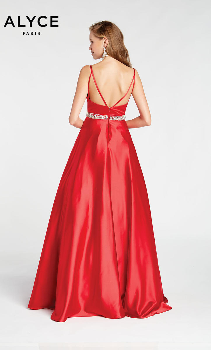 The fabric in this The Secret Dress by Alyce Paris style is Beaded Luminous Satin