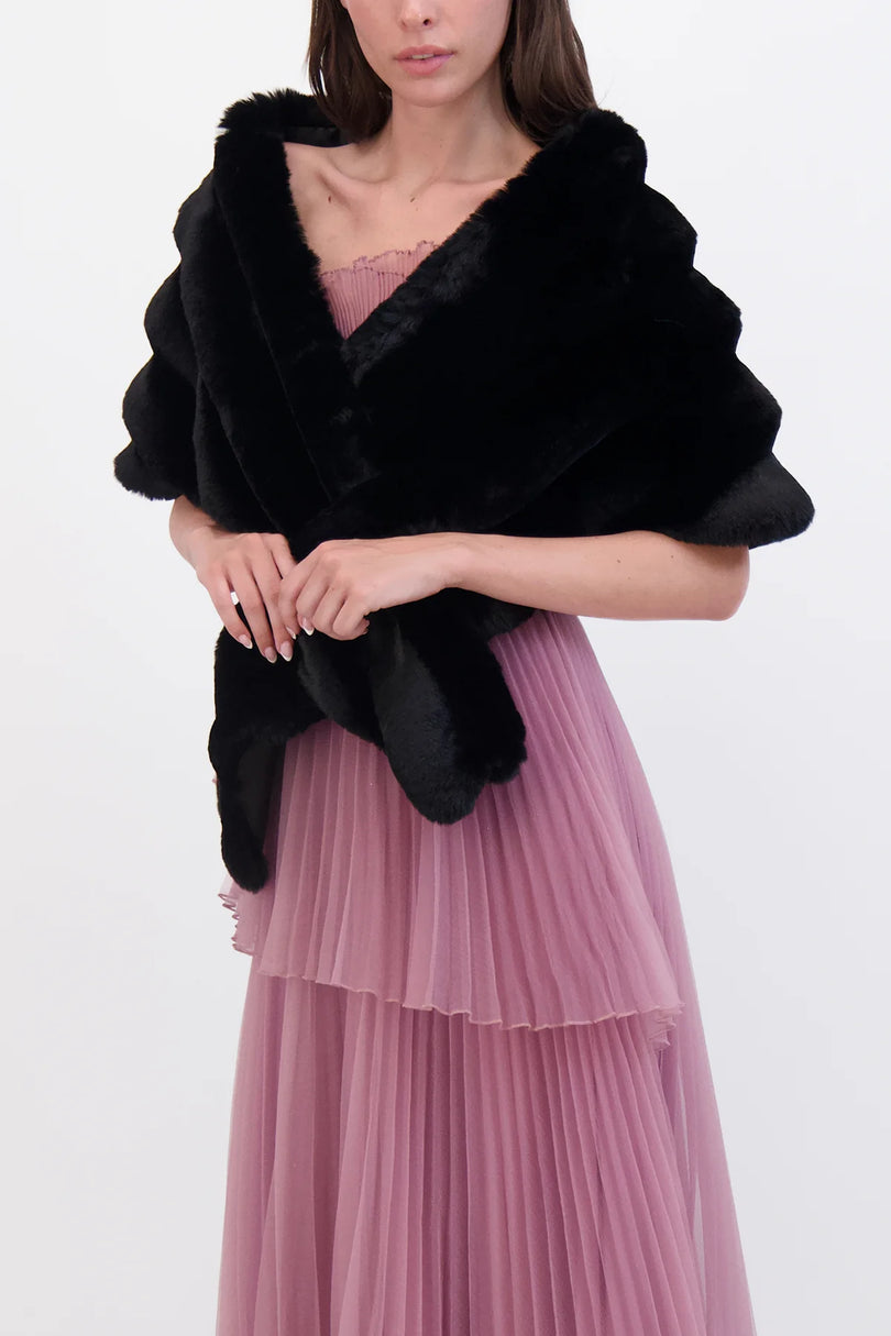 Indulge in the luxe texture of Theia Faux Fur Chinchilla Stole 8890009. This 14-inch wrap offers a chic and polished touch for chilly winter events. One size. This item is a final sale.