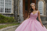 Embrace your uniqueness in this stunning two-piece quinceanera ball gown designed by Morilee Vizcaya. 89407, has a sweetheart v-neck bodice decorated with three-dimensional floral lace appliques and a sparkle tulle skirt that removes to reveal a chic mini dress! I mean how cool and unique is that! Dont miss out on her for your special day!