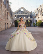 Our Austyn Quinceaera dress is an exquisite tulle gown, designed to make your day truly unforgettable. The sweetheart neckline is framed by delicate floral embroidered straps, leading to a structured corset back. A floral embroidered peplum hem adds a whimsical layer of texture and movement, enhancing the ethereal beauty of the skirt. Customize your look with detachable off-shoulder draped straps for soft elegance, a dramatic floral embroidered train that flows with every step, and a double-loop bow adorned with matching floral embroidery and trailing tails.