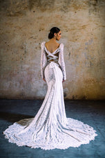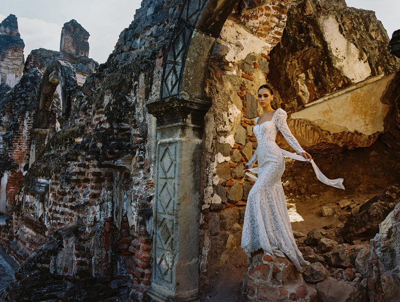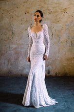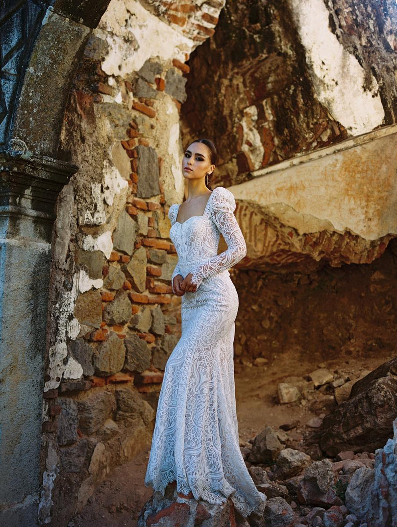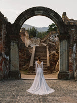 A modern take on a classic bridal silhouette, this is Jenny from the Fall 2023 Wilderly Bridal Gown collection. A corset-inspired laced back contrasts beautifully with Jenny's high-contrast lace and delicately puffed sleeves. Boho-inspired, she's an ethereal choice for your wooded wonderland wedding or destination dream dress. She's even available in shorter lengths for our petite brides! Please call our Dallas, Texas location to check in store availability, pricing, and current ship dates.